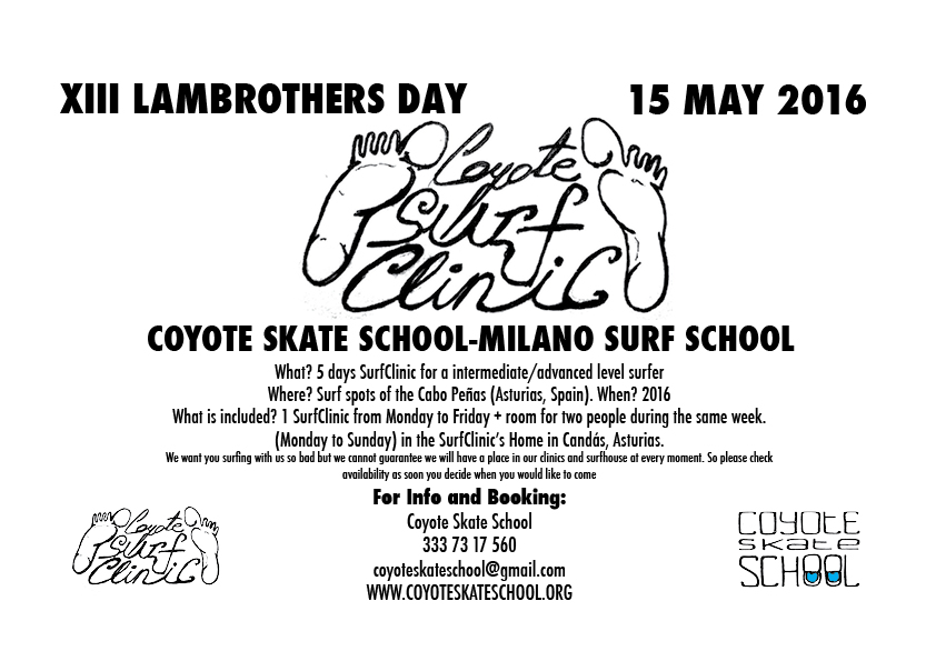 Coyote Skate School – Milano Surf School for Lambrothers 2016 Posted on May 13, 2016May 13, 2016 by Coyote