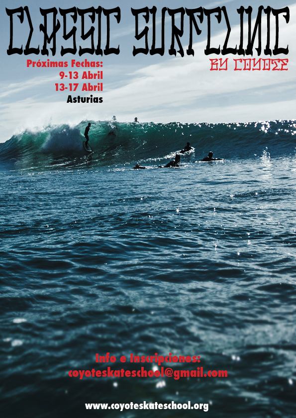 Ya tenemos las fechas de la nueva edición de nuestros CLASSIC SURF CLINIC, organizados por SURFCLINIC.ORG (La Escuela de Surf del Cabo Peñas) y por Coyote. El objetivo es ofrecerte el mejor servicio de surf coach que puedas encontrar y ayudarte a hacer que tu surfing crezca para que lo puedas disfrutar aún más. Te organizamos el viaje desde Barcelona o te pasamos a recoger por el Aeropuerto de Asturias. Escríbenos para informarte.